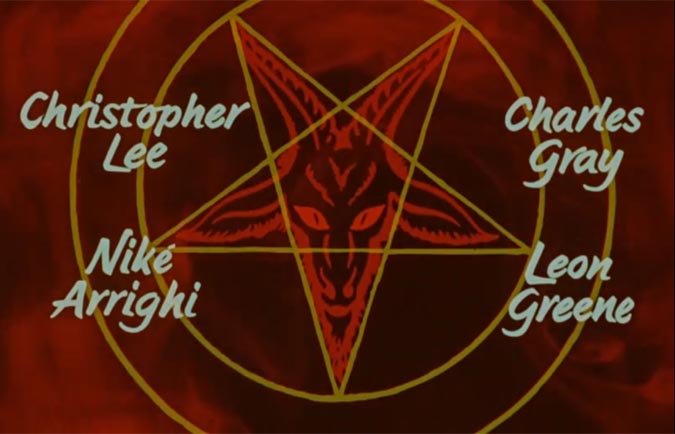 A yellow pentagram slowly fades in with an illustration of The Goat of Mendes – that abomination of a man’s body with a ram’s head stares back at me as the title ‘The Devil Rides Out’ shows up on screen.